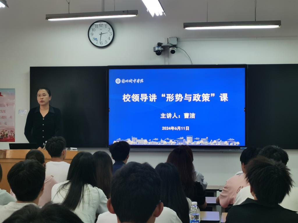 611日,校党委书记曹洁在校本部知行楼智慧教室讲授“形势与政策”课,来自信息工程学院、幼儿师范学院的近两百名师生代表分别在校本部、培黎校区及城关校区通过线上线下聆听授课,这也是点点官网首次通过三校区联动的方式进行直播授课。