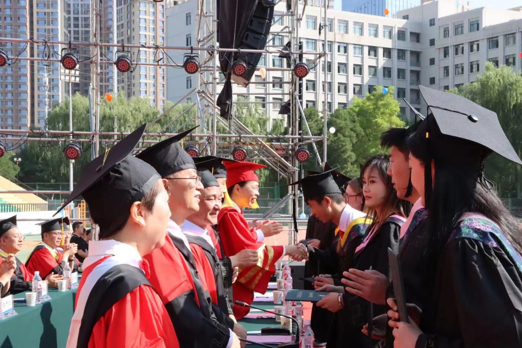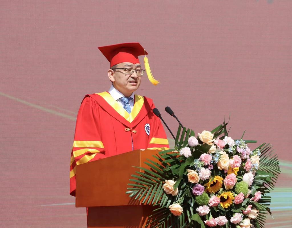 校党委副书记、校长韩高年发表热情洋溢的致辞,代表学校向毕业生们表示热烈祝贺!他对2024届毕业生提出殷切期望。一是志存高远,胸怀家国,摒弃小我,追求大我。希望同学们能自觉肩负起时代赋予青年的历史使命,不忘初心梦想,常怀家国之情,把青春的忠诚书写在党和国家事业中,将不懈的追求融入到祖国行进的史册里,让生命在奉献中升华,让青春在奉献中闪光;二是努力奋斗,无惧平凡,做平凡岗位的不凡英雄。希望同学们能胜不骄,败不馁!在顺境中把握机遇,乘势而上;在逆境中百折不挠,披荆斩棘。在不断解决急事难事中强健筋骨,在化解危局困境中磨炼胆略,在迎接挑战中增长才干,做“平凡”事业中的“不凡英雄”;三是终身学习,学以致用,勇于创造属于自己的辉煌。希望同学们能保持终身学习的姿态,不负时代,不负韶华,学以致用,奋力生长,勇敢创造属于自己的辉煌。