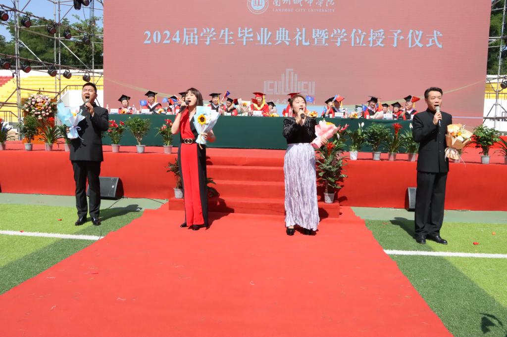 典礼中,毕业生们进行了“快闪”表演,歌曲联唱《启航》《起风了》《当你》《栀子花开》《稻香》《离别开出花》引发了全场师生的强烈共鸣。学校教师纵情歌唱《领航》,在师生共唱的《我和我的祖国》的歌声中,将气氛推向高潮,也为毕业典礼划上完美的句号。