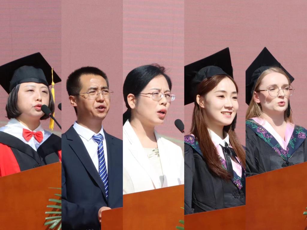 化学工程学院饶红红代表全体教师发言,表达了对毕业生的热切祝贺和殷殷期盼;家长代表赵红燕对学校的栽培和老师的关心关爱表示衷心的感谢;校友代表杨斌寄语即将奔赴崭新未来的毕业生们,要勇敢、无畏、忍耐和坚毅,做一个有责任心、有担当的人;2024届毕业生代表马仁婷、2024届留学生代表李丽代表全体毕业生发言,表达了对母校、老师、父母的感恩之情,畅叙对未来美好人生的憧憬。