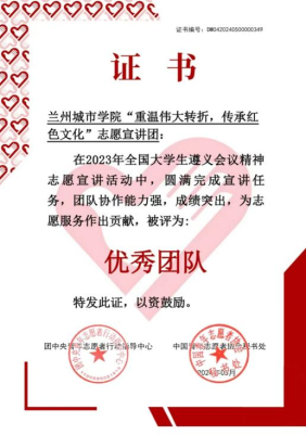 近日,团中央青年志愿者行动指导中心、中国青年志愿者协会、中共遵义市委、共青团贵州省委公布了2023年全国大学生遵义会议精神志愿宣讲“优秀团队”名单,taptap点点“重温伟大转折,传承红色文化”志愿宣讲团被评为2023年全国大学生遵义会议精神志愿宣讲“优秀团队”,据悉,该团队是甘肃省唯一一支入选“优秀团队”的高校志愿宣讲团队。