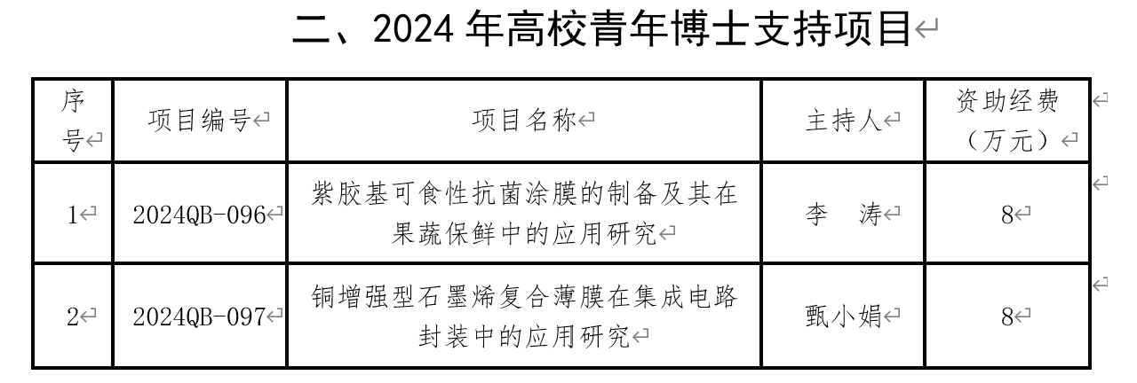 青年博士支持项目以促进拔尖人才培养与高端人才引进为导向,支持青年博士教师,将自身学科研究方向凝练与全省经济社会发展实际需求紧密结合,积极开展科研创新与成果转移转化,推动高校青年博士人才与企业、园区之间的产学研用协同创新发展而设立。2024年学校青年博士支持项目立项2项,资助总经费16万元。