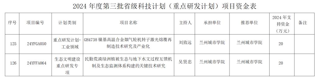 2024年度第三批省级科技计划 (重点研发计划)项目立项结果公布
