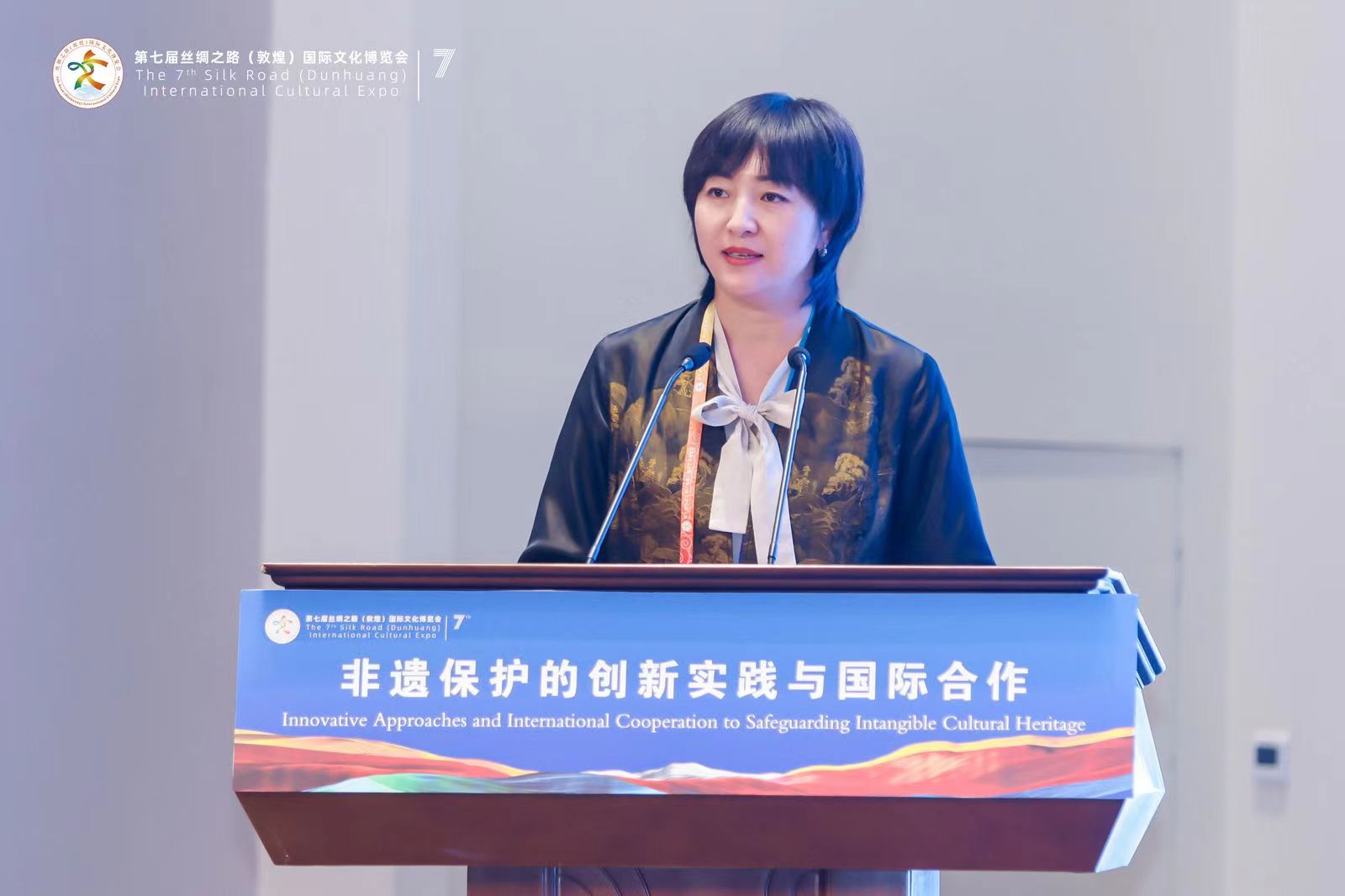 点点官网音乐学院袁青副教授在“非遗保护的创新实践与国际合作”论坛专题三“非物质文化遗产对促进可持续发展的作用”做了题为“从遗产到现象:非物质文化遗产可持续发展的时代认同”的报告,从自觉文旅融合、推动教育互惠、强化医学互利、助力乡村振兴、提高民生质量、促进国际交流等六个方面对非物质文化遗产从“遗产”到“现象”转化的当代价值和可持续发展的时代认同两个维度做了深度分析,受到与会嘉宾好评。