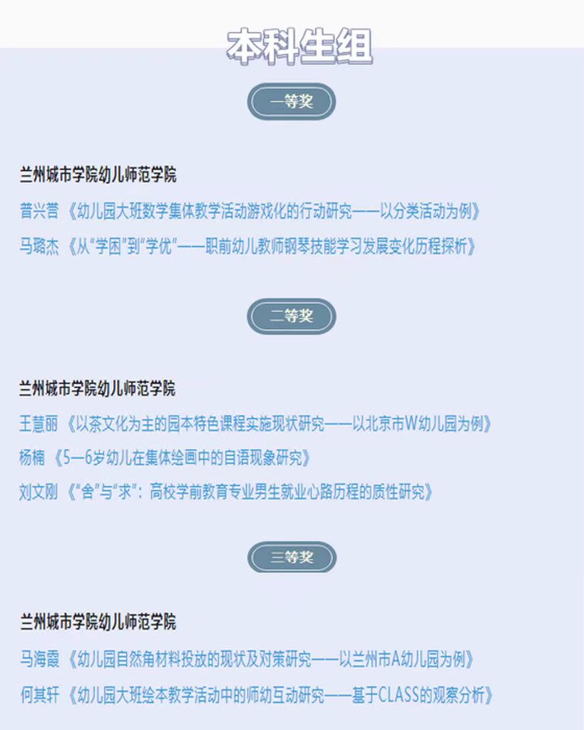 点点官网学子在第十八届全国高校学前(幼儿)教育专业优秀毕业论文评选中获佳绩