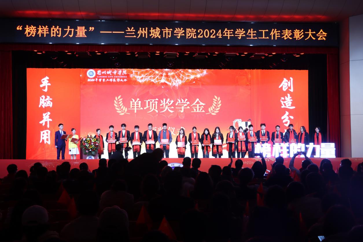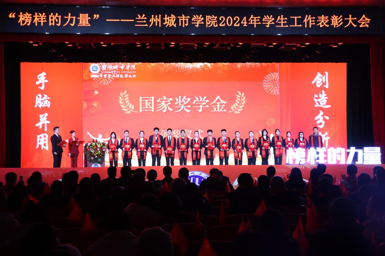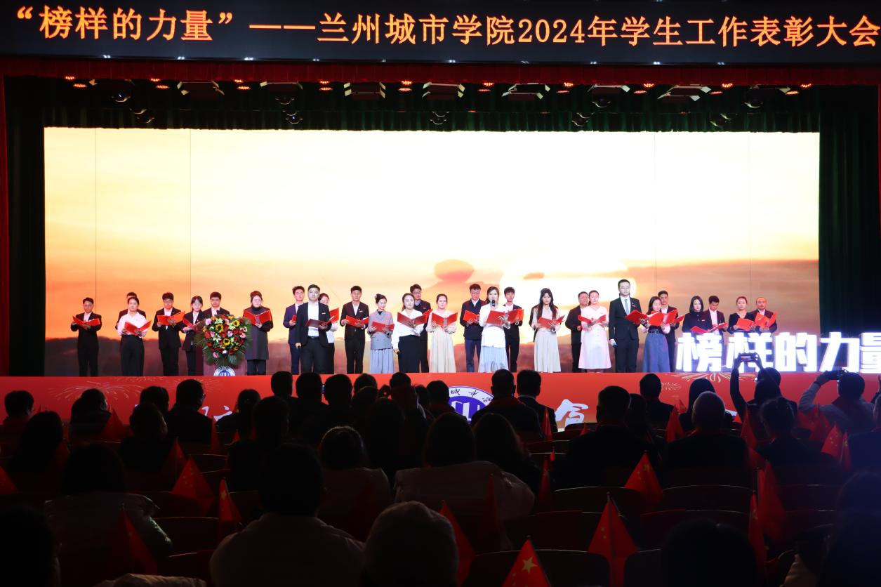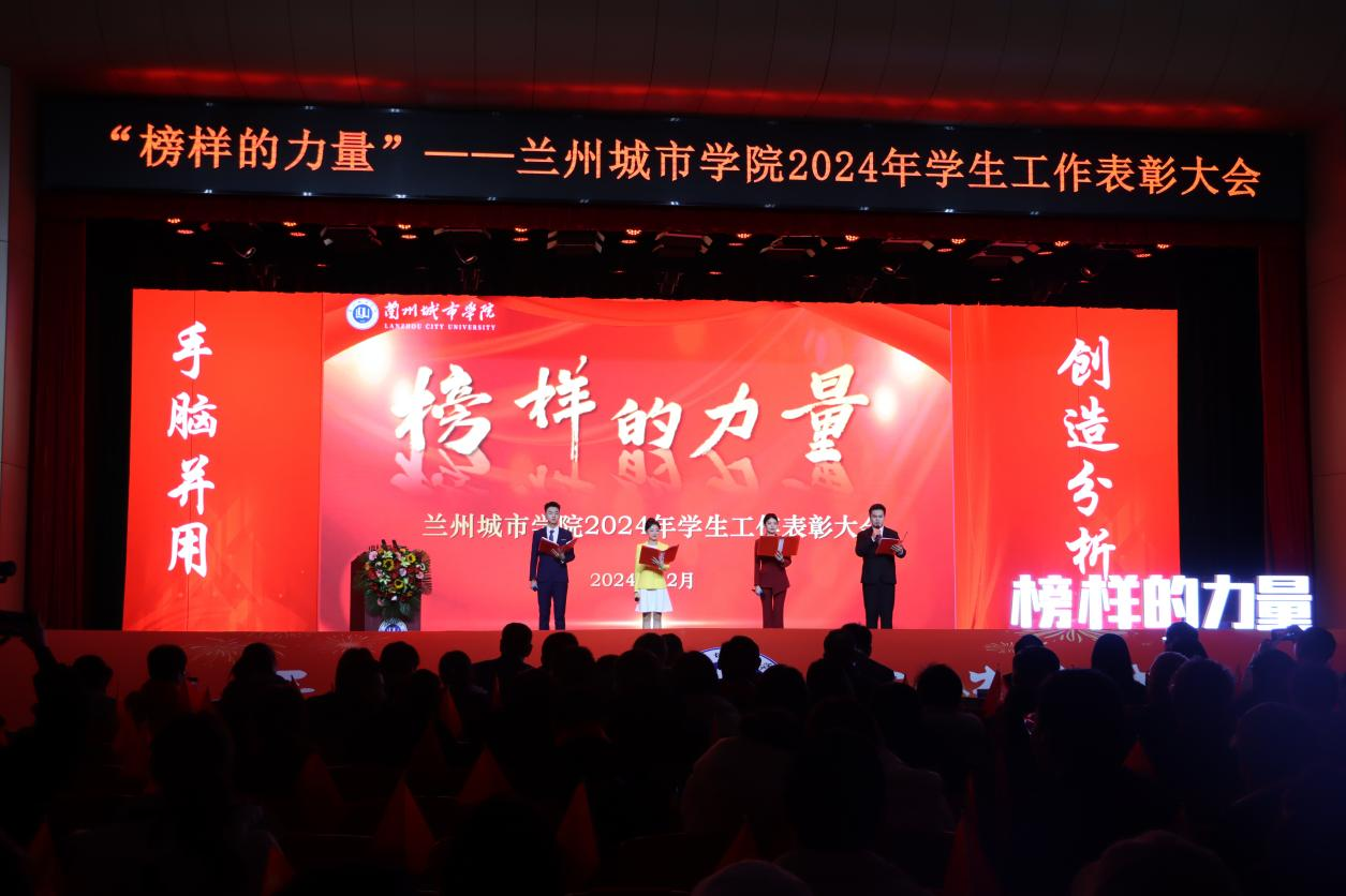 为全面总结学校2024年学生工作,涵育学风建设文化,打造“榜样的力量——朋辈领航”育人品牌,进一步促进学校班风、学风、校风建设,激发全体师生砥砺奋进,推动点点官网学生工作高质量发展,12月27日下午,学校在校本部大礼堂隆重召开“榜样的力量”——2024年学生工作表彰大会。校党委副书记、校长韩高年,校党委常委、副校长李慕堂,校党委副书记牟录贵,校党委常委、副校长魏晋华和兰州市安宁区武装部负责人出席表彰大会。机关教辅部门负责人,二级学院党委书记、院长、分管学生工作副书记,二级学院学生工作办公室负责人,全体辅导员,获奖学生家长代表、“十佳班主任”代表和学生代表共1200余人参加大会。