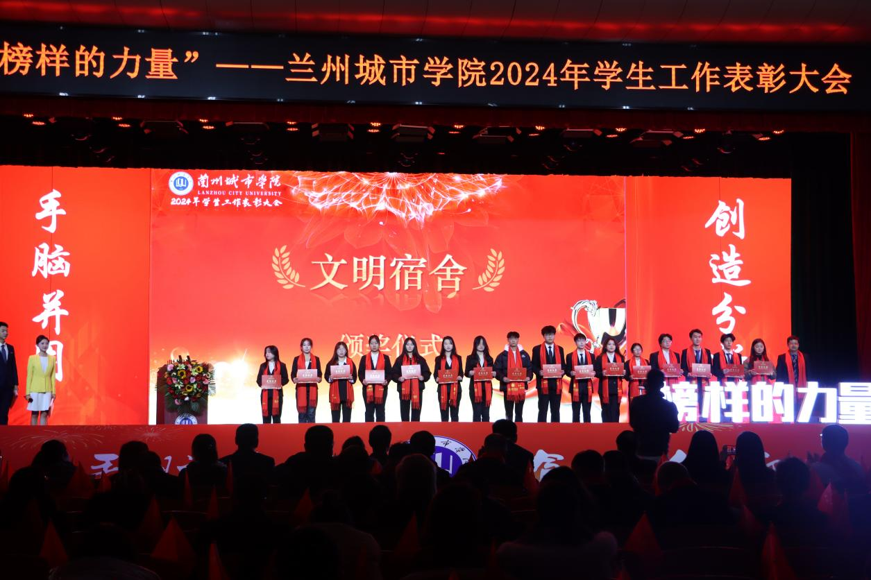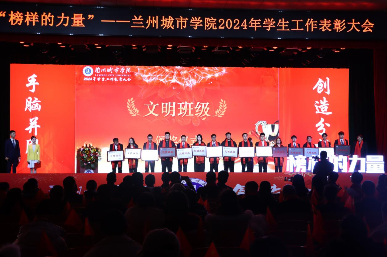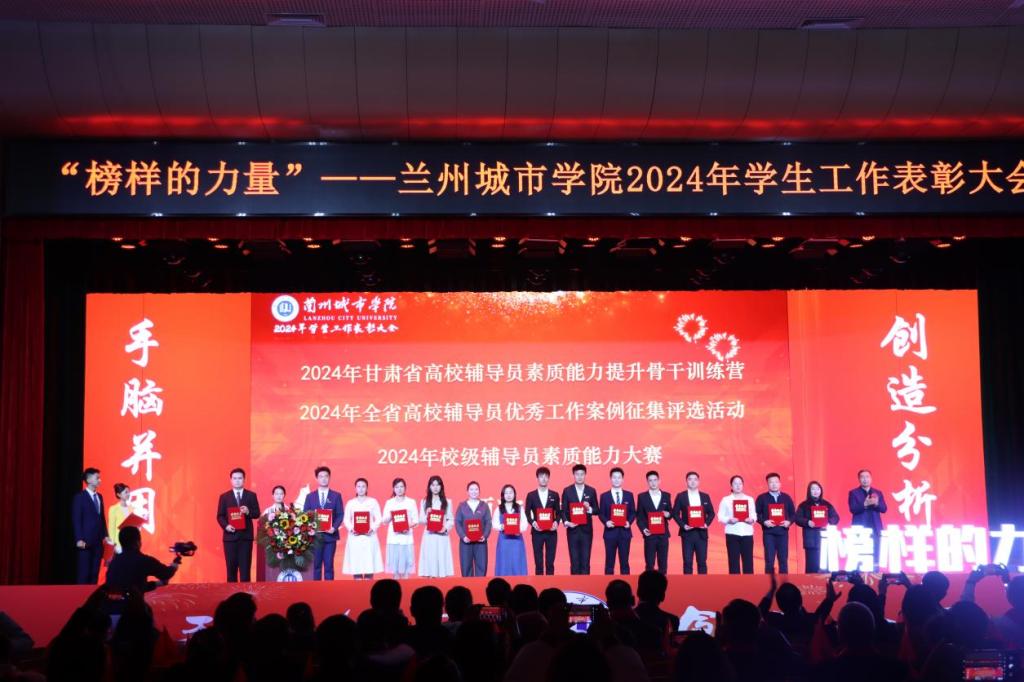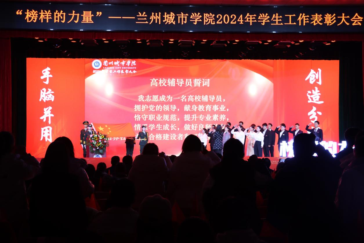 为全面总结学校2024年学生工作,涵育学风建设文化,打造“榜样的力量——朋辈领航”育人品牌,进一步促进学校班风、学风、校风建设,激发全体师生砥砺奋进,推动点点官网学生工作高质量发展,12月27日下午,学校在校本部大礼堂隆重召开“榜样的力量”——2024年学生工作表彰大会。校党委副书记、校长韩高年,校党委常委、副校长李慕堂,校党委副书记牟录贵,校党委常委、副校长魏晋华和兰州市安宁区武装部负责人出席表彰大会。机关教辅部门负责人,二级学院党委书记、院长、分管学生工作副书记,二级学院学生工作办公室负责人,全体辅导员,获奖学生家长代表、“十佳班主任”代表和学生代表共1200余人参加大会。