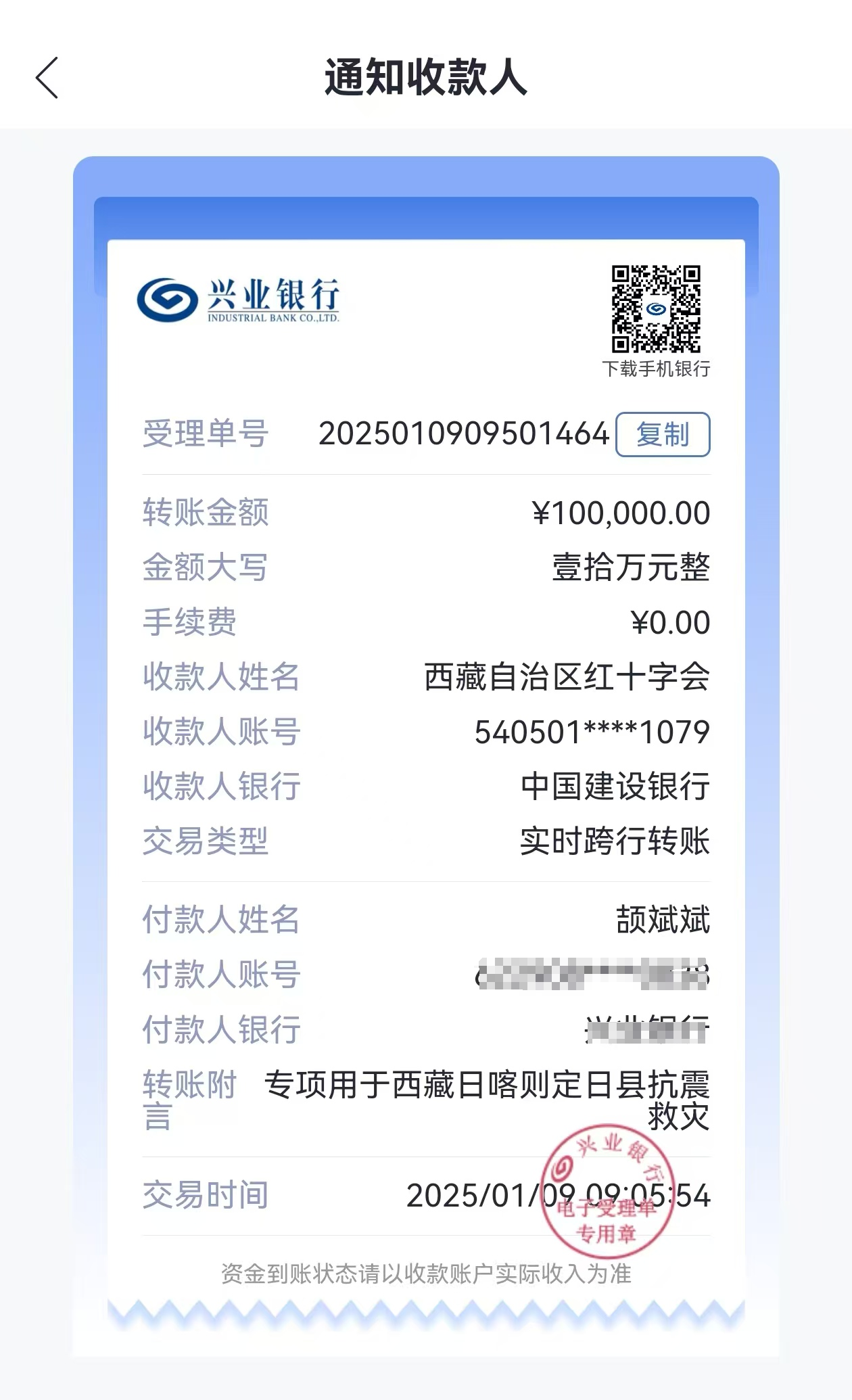 颉斌斌老师得知西藏发生地震后,深感揪心,希望通过自己的绵薄之力为灾区人民带去一些帮助。他表示,做为甘肃人,不禁想起2023年,也在天寒地冻时,甘肃积石山发生6.2级地震后,全国人民源源不断输送的爱心和温暖。他说:“作为教师,不仅要传授知识,更要培养学生的社会责任感和爱心。”此次捐款,正是他践行这一理念的具体体现。