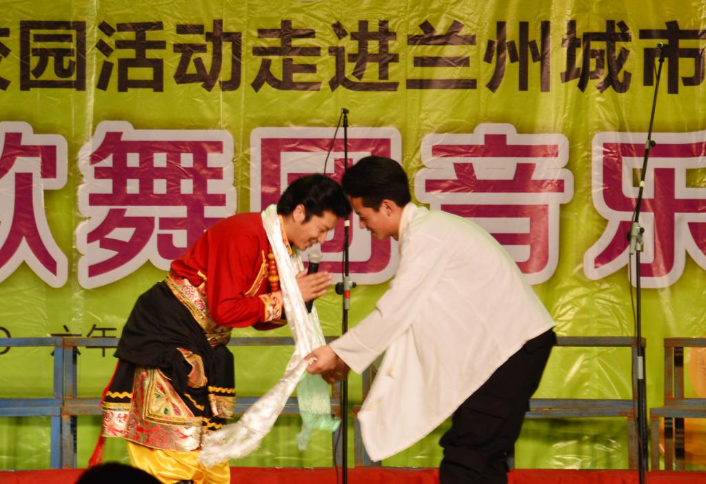演出开始前,校领导陈晓龙、王基会见了中央民族歌舞团副团长韩新波及演职人员。