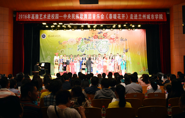 5月16日晚,由教育部、文化部、财政部主办的2016年高雅艺术进校园活动——中央民族歌舞团《春暖花开》音乐会专场演出在校本部礼堂隆重上演。中央民族歌舞团副团长韩新波,校领导陈晓龙、刘举科、张兴福、马振林、王基、荀渊和1200余名师生观看了演出。