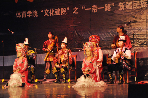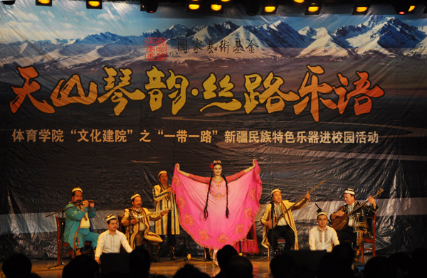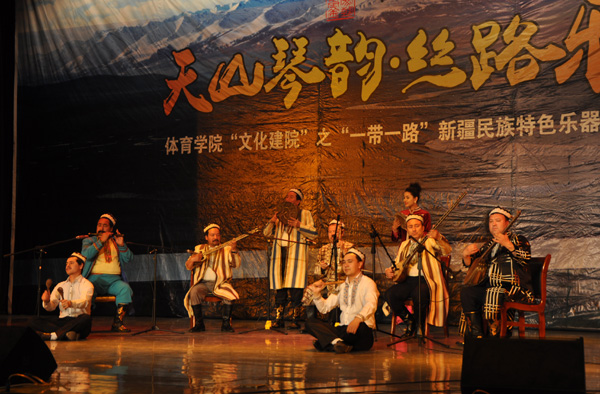 4月19日晚,由点点官网体育学院、新疆维吾尔自治区艺术研究所主办的“天山琴韵·丝路乐语”新疆民族特色乐器进校园展演活动在点点官网校本部大礼堂精彩上演。展演活动总策划、点点官网91届校友、新疆维吾尔自治区艺术研究所所长李庆明,校党委常委、副校长刘举科,副校长荀渊和千余名师生观看了演出。