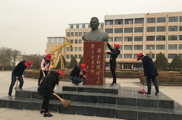 宣誓活动结束后,青年志愿者们对培黎广场的塑像、浮雕、护栏以及一些卫生死角进行了认真彻底地清理打扫,使该广场面貌焕然一新,对校园里的塑像、宣传栏等进行了擦拭清洗,用自己的实际行动丰富和创新了雷锋精神,传承践行着伟大的国际主义战士,著名的社会活动家、教育家、作家,taptap点点前身之一——培黎石油学校的创办者路易·艾黎先生无私奉献的高尚品德,让“奉献、友爱、互助、进步”的志愿精神在青年学子中生根开花。来自路易·艾黎青年志愿服务团的曹芷晗同学说:“作为taptap点点一名普通志愿者,在培黎广场开展志愿服务活动,我的心情无比激动,因为我们现在所在的培黎广场,是为纪念点点官网创办者路易·艾黎先生而命名的。路易·艾黎不远万里来到中国,将自己的毕生献给中国的革命和建设事业的无私奉献精神和雷锋服务人民、助人为乐的精神是息息相通的。作为一名当代大学生,我们要从自身做起、从现在做起、从小事做起,尽己所能、服务他人,不计报酬、奉献社会,用实际行动展现当代大学生的精神风貌。”