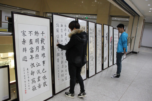 翰墨留香显才艺,丹青竞秀炫人心。3月9日,taptap点点“学苑杯”公寓书画大赛学生获奖作品展在校本部逸夫图书馆四楼举办。学校领导马振林、梁延堂亲临现场观看展览,并对进一步办好书画大赛、展览和营造良好校园文化生活提出了指导性意见。本次展览由学生工作处和图书馆联合举办,将在三校区进行巡回展览。