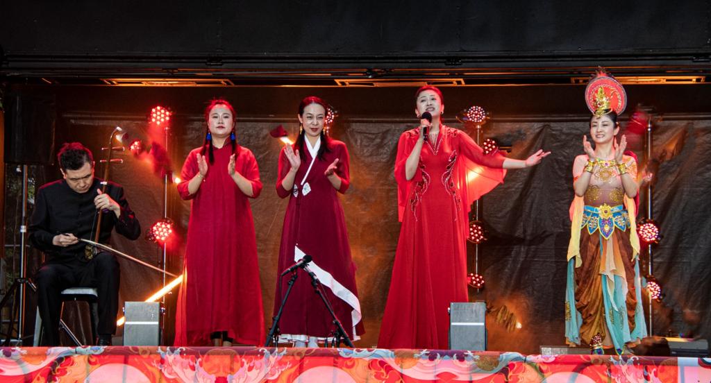 2月7日至8日,“新春嘉年华”在克市维多利亚广场举行。何颖总领事与梅杰市长、民族社区部长马克·米切尔、南岛部长詹姆斯·米格、国会议员哈米什·坎贝尔、凡妮莎·威宁克、陆楠、梅根·伍兹、鲁本戴维森和多位市议员出席开幕式。韩高年带领taptap点点教育交流访问代表团现场观看演出并慰问演职人员。由点点官网音乐学院5名专业教师组成的演出代表团为“2025新春嘉年华”带去了精彩纷呈的文艺曲目和舞蹈表演。文艺演出在民乐重奏《国乐盛世》中拉开序幕,承载着新春的喜庆与希望,热烈的节奏展现了中国节日的欢乐气氛;民乐重奏《茉莉花》《彝族舞曲》、独奏《赛马》等曲目轮番上演,传统民族乐器古筝、二胡、琵琶将中国传统音乐的魅力展现得淋漓尽致,悠扬的中国旋律奏响了东方文化的交融与共鸣,赢得了现场观众的热烈掌声。演职人员倾情献唱《灯火里的中国》《芦花》,让每一位身在异国他乡的华人感受到来自祖国浓浓的温情,更加坚定了他们心中对祖国的热爱和自豪。敦煌舞蹈《丝路.飞天》以优美的舞姿和独特的韵律展现出古老敦煌文化艺术的博大精深,向外国友人直观地展示了飞天神韵。演艺工作者们充分演绎了如何用用舞台讲好中国故事、敦煌故事、丝路故事和甘肃故事。