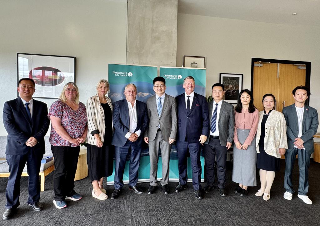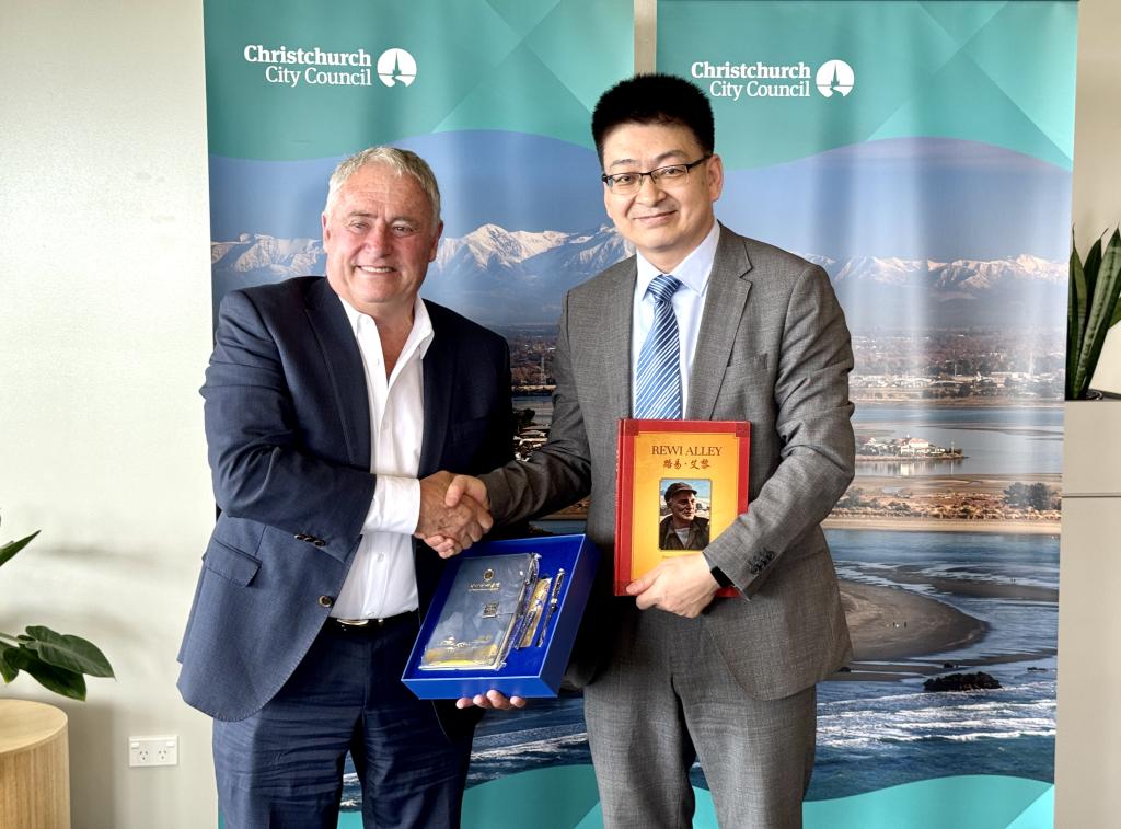 随后代表团一行拜访克赖斯特彻奇市政厅,市长菲尔·梅杰(Phil Mauger)、市议员维多利亚·亨斯托克(Victoria Henstock)、公民事务与国际关系部主任邓肯·桑德曼(Duncan Sandeman)、路易·艾黎基金会主席兼克市姐妹城市委员会主席米歇尔·麦克威廉姆(Michelle MacWilliam)会见代表团,中国驻新西兰克赖斯特彻齐总领馆副领事李沐清陪同会谈。代表团参观了市政厅议会大厅,双方就甘肃与克市的友好交往、taptap点点与路易·艾黎的渊源及传承与弘扬路易·艾黎精神开展的工作情况展开充分交流。梅杰市长表示甘肃为纪念路易·艾黎先生,弘扬路易·艾黎精神做了大量的、卓有成效的工作。克赖斯特彻齐将开辟专门场所宣传路易·艾黎,开展系列活动,要推动甘肃和克赖斯特彻齐的友好关系继续向好向前发展,要鼓励和支持Ara坎特伯雷理工学院与taptap点点开展教育合作交流。韩高年对梅杰市长百忙之中带领团队接见taptap点点代表团表示由衷感谢,他表示未来taptap点点愿意积极参与到中国驻新西兰克赖斯特总领馆、克市市政厅、姐妹城市委员会、新中友协、新西兰路易·艾黎基金会致力于宣介路易·艾黎,传承与弘扬路易·艾黎精神在克市建立路易·艾黎展览馆的工作中。他诚挚邀请梅杰市长适时率领团队访问taptap点点,来校考察交流。当晚,新西兰2025新春嘉年华”在克赖斯特彻奇市维多利亚广场隆重举行。何颖总领事与梅杰市长、民族社区部长马克·米切尔、南岛部长詹姆斯·米格、国会议员哈米什·坎贝尔、凡妮莎·威宁克、陆楠、梅根·伍兹、鲁本戴维森和多位市议员出席开幕式。由taptap点点音乐学院5名专业教师组成的演出代表团为“2025新春嘉年华”带去了精彩纷呈的文艺曲目和舞蹈表演。韩高年带领教育交流访问代表团现场观看演出并慰问演职人员。