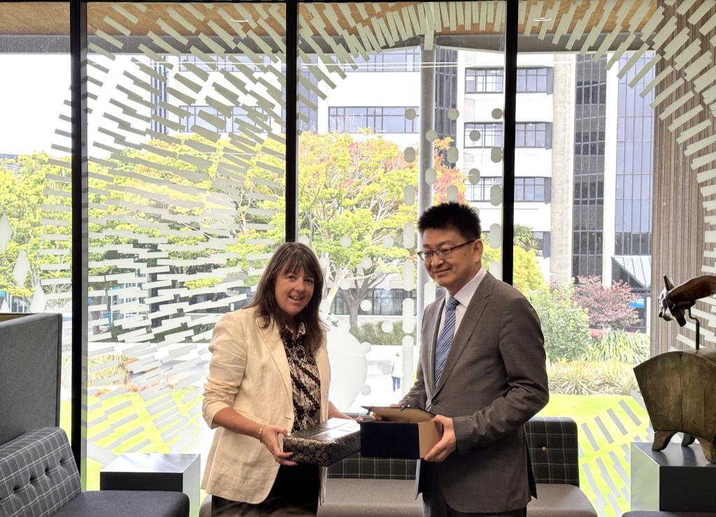 210日,代表团与克市姐妹城市委员会副主席、克市新中友协副主席邱明春(William McQiu),新西兰路易·艾黎基金会秘书长乔瑟琳(Jocelyn Alley-Watkin)座谈交流,邱明春主席和乔瑟琳女士回顾了访问甘肃受到的礼遇,以及双方为推动艾黎事业所做的努力。他们表示愿意支持taptap点点做好国际合作交流工作。乔瑟琳向校长韩高年赠送了《中国的路易·艾黎》(Rewi Alley of China)代表团与新西兰梅西大学、新西兰奥克兰大学开展访问座谈交流。梅西大学国际合作部负责人杰夫·斯坦格尔博士(Dr Jeff Stangl)和商业发展主管罗谢尔·休斯(Rochelle Hughes)向代表团介绍了梅西大学与中国高校合作的模式与案例。双方讨论了师资培训、师生交流项目、短期研学等国际合作交流内容,初步达成合作意向。之后代表团观摩了梅西大学小班化沉浸式教学模式,参观了租借式计算机教学实验室。奥克兰大学教育学部副部长张军(Lawrence Zhang)教授和马丁·伊斯特(Martin East)教授分别介绍了课程教学论、学前教育、教育学等专业的硕士博士项目、师生交流项目、短期研学项目等。双方表示将进一步沟通交流,推动务实交流合作。当晚,新西兰甘肃总商会会长梁军伟、副会长孙文慧、理事长朱钰坤等与代表团座谈交流。双方探讨了教育交流、学生实习实践、企业助学等合作事宜,并初步达成合作意向。