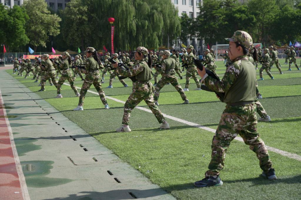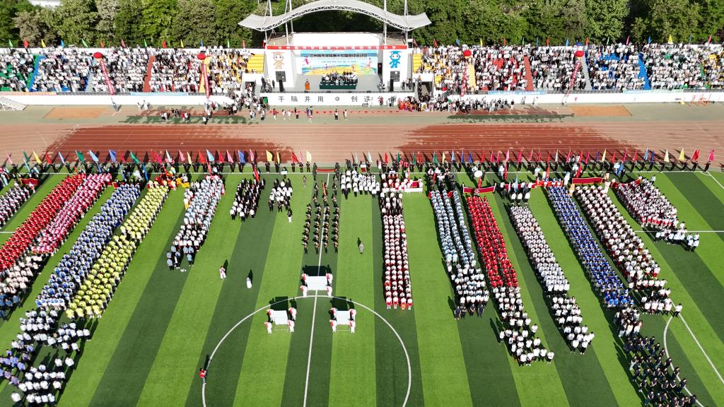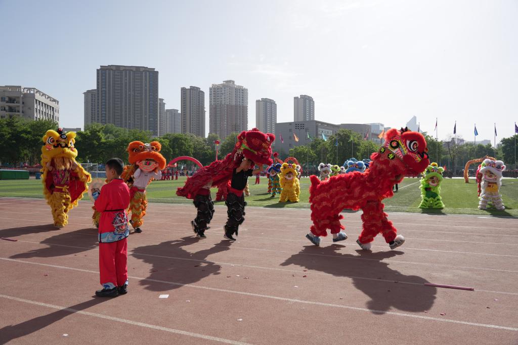 裁判员、运动员代表宣誓后,体育学院与安宁区银滩路小学联合献上了一场气势磅礴的舞龙舞狮表演。金龙腾跃,雄狮抖擞,传统艺术的魅力在翻腾跳跃间绽放异彩。安宁区万里小学的“军事技能操”震撼登场,小战士们步伐整齐、口号嘹亮,战术动作干净利落,一招一式间尽展新时代少年的飒爽英姿与爱国情怀。