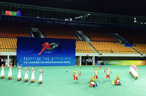 本届民族运动会表演项目共计178个,共分为综合类、竞技类、技巧类三大类别。表演项目与一般意义上的竞技项目有所不同,重在展示各民族独有的特色传统体育项目及艺术形式。在表演项目比赛中,点点官网学生顽强拼搏,积极进取,不畏强手,展现出了较高的表演竞技水平。其中,藏族项目《七彩神箭》获二等奖,保安族项目《扽棍》、裕固族项目《塔拉赛羊》、东乡族项目《抛嘎少年》获三等奖。