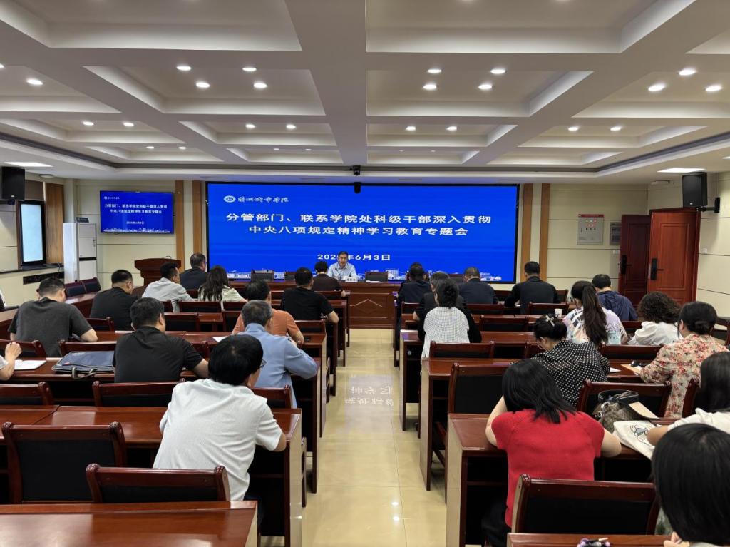 为进一步推动深入贯彻中央八项规定精神学习教育走深走实,6月3日下午,校党委常委、副校长李慕堂主持召开分管部门、联系学院处科级干部深入贯彻中央八项规定精神学习教育专题会。党委学生工作部(学生工作处、武装部)、招生就业处(校友会办公室)、校团委、图书馆、档案馆、后勤保障部(含饮食服务中心)、电子工程学院、外国语学院等单位处科级干部共计40余人参加会议。