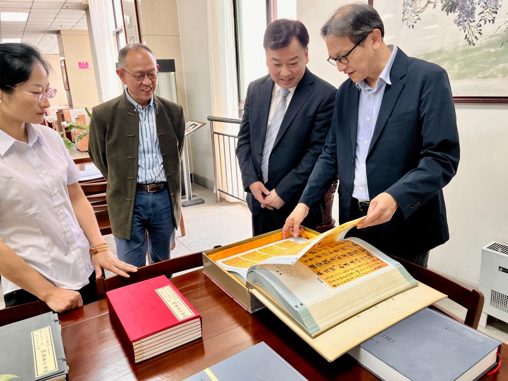 会谈前,李天祥一行参观了四库全书书库和张芝书法院。学校相关部门负责人参加座谈会和签约仪式。