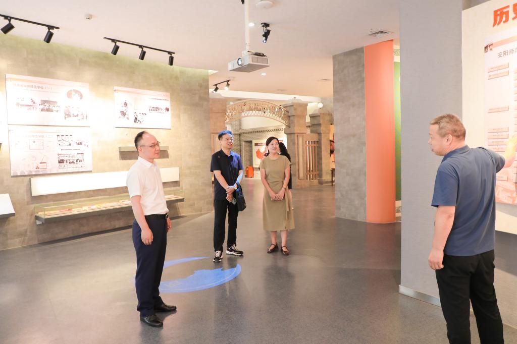 6月24日下午,考察团前往安阳师范学院进行调研。安阳师范学院相关领导及部门负责人接待调研组一行。双方就大学文化建设、文化传承与创新、信息化建设等主题进行了广泛交流。方忠义表示,安阳师范学院在文化育人方面的特色举措令人印象深刻,希望未来两校能加强合作,共同探索高等教育高质量发展的新路径。