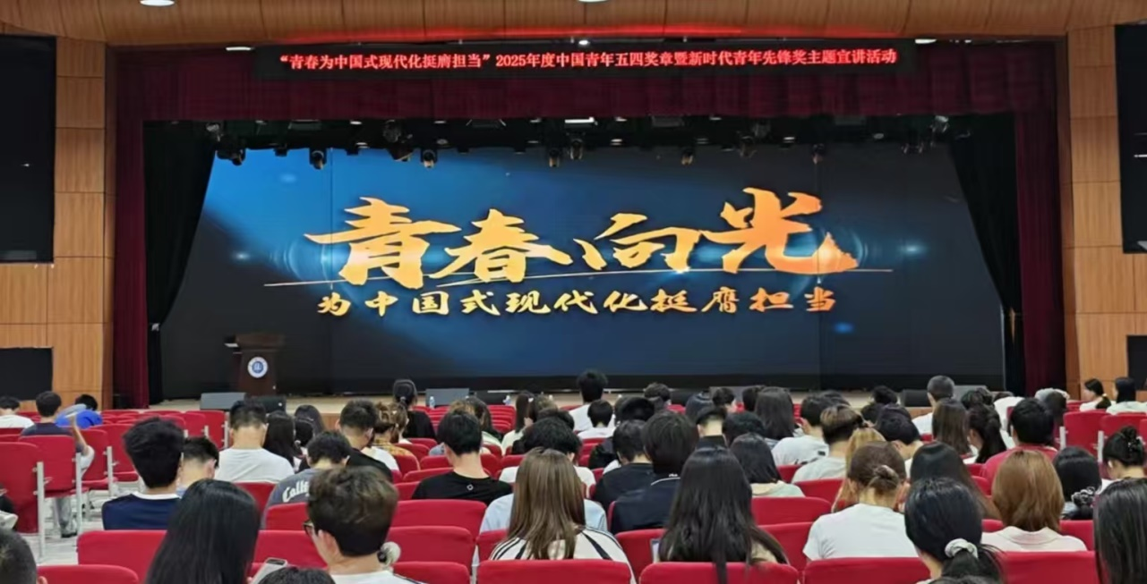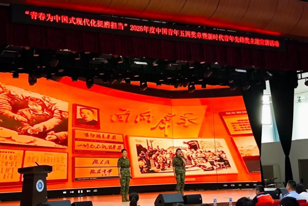 为深入学习宣传贯彻习近平总书记关于青年工作的重要论述和给新疆谢依特小学戍边支教西部计划志愿者服务队队员重要回信精神,充分发挥先进典型在广大团员青年思想政治引领中的积极作用,更好示范引领大学生为强国建设、民族复兴伟业挺膺担当。在团省委的支持协调下,学校团委于6月26日下午,在培黎校区大礼堂隆重举办“迎七一 心向党”2025年度“中国青年五四奖章暨新时代青年先锋奖”获奖集体(个人)主题宣讲会。校党委常委、副校长李慕堂,培黎校区相关学院党委书记和近千名师生代表参加活动。