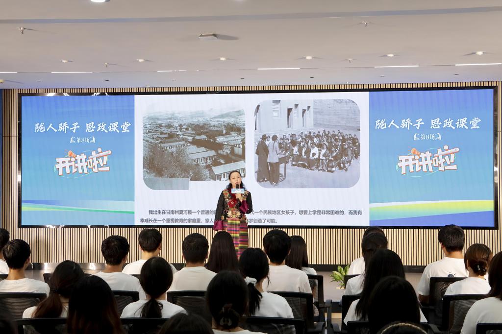 鲁毛才让以《以爱为灯,照亮特殊教育之路》分享了自己创办甘南州特殊教育学校的心路历程和点滴收获,为在场师生带来了一堂极具感染力的思政课。赵瑞雪也就当代青年应追逐怎样的榜样、树立怎样的人生理想与师生展开互动交流。参会学生积极提问,就职业规划、求职选择等问题向鲁毛校长虚心请教。现场气氛热烈,互动充分,师生们纷纷表示深受鼓舞与启发。