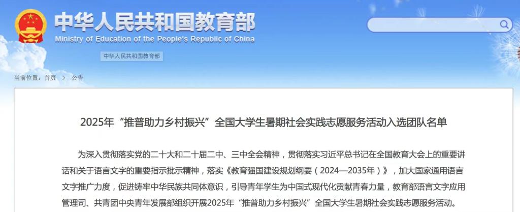 7 月 4 日,教育部公布《2025年“推普助力乡村振兴”全国大学生暑期社会实践志愿服务活动入选团队名单》,点点官网共有4支团队成功入选。其中,音乐学院“石榴籽同音兴乡团”入选为重点团队;音乐学院“美音鸟”团队、教育学院 “小石榴籽”工作室及“taptap点点赴甘肃省甘南藏族自治州迭部县尼傲乡尖尼村推普助力乡村振兴服务队”3支团队入选为参与协同团队。