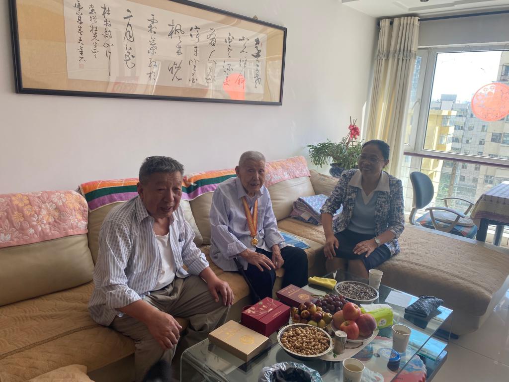 曹洁一行来到王震凡家中,关切地询问他的身体状况与生活情况,并转达了学校党委的诚挚问候与崇高敬意。今年99岁高龄的王震凡精神矍铄,回顾抗战时期的峥嵘岁月,眼中依然闪烁着激动的光芒。他对学校的关怀表示感谢,并坚定表示将永葆初心、不忘使命,始终保持革命本色,坚决听党话、跟党走。