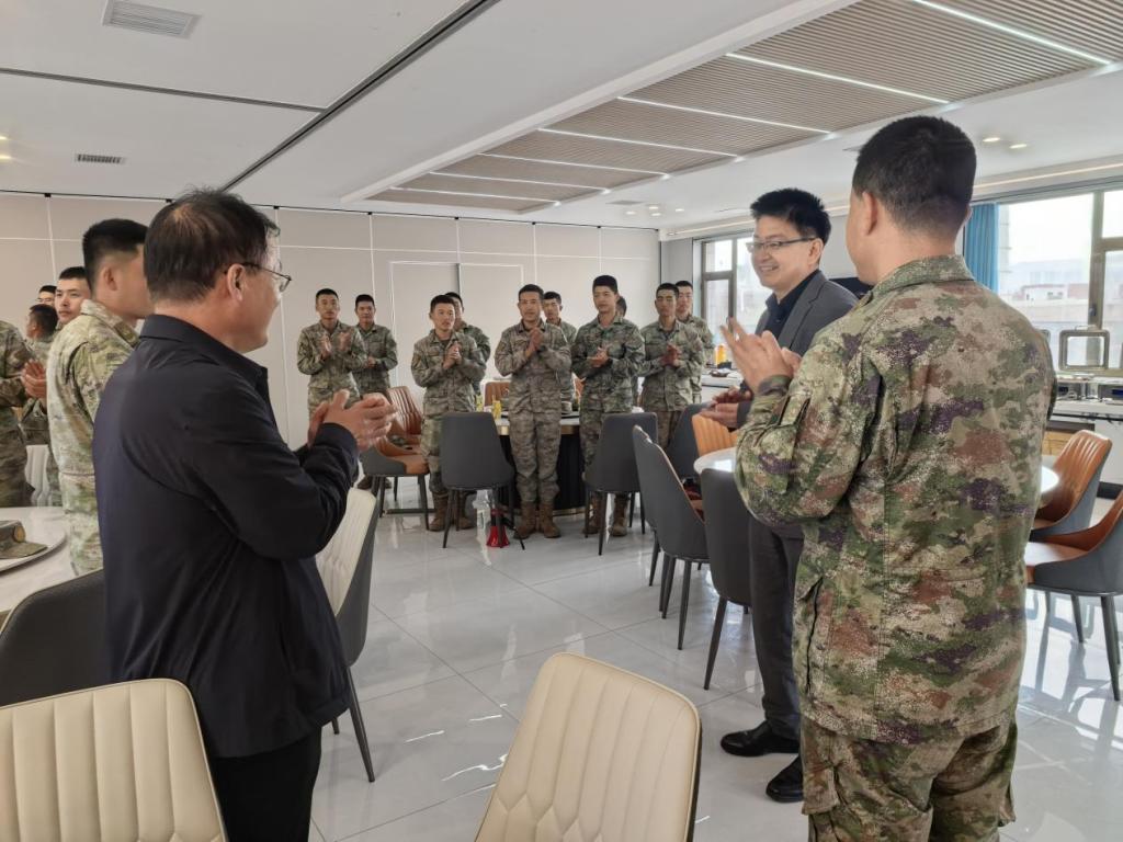 慰问活动中,校领导为官兵们送上慰问礼包,现场气氛温馨热烈。此次活动体现了学校对承训官兵的关怀与支持,进一步增强了军校情谊,为圆满完成军训任务注入了动力。