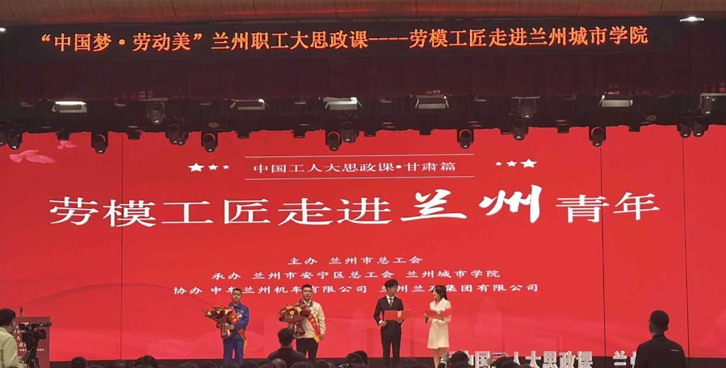 9月29日晚,“中国梦·劳动美”兰州职工大思政课暨劳模工匠走进兰州青年活动在学校培黎校区成功举行。邀请全国劳动模范、中车兰州机车有限公司机车电气钳工潘春望,甘肃省劳动模范、兰石集团冷作工首席操作师朱家彪走进校园,与近500名师生代表面对面交流。兰州市总工会党组成员、副主席曾朝正,安宁区总工会副主席杨天翔,校党委副书记牟录贵,相关部门负责人出席活动。