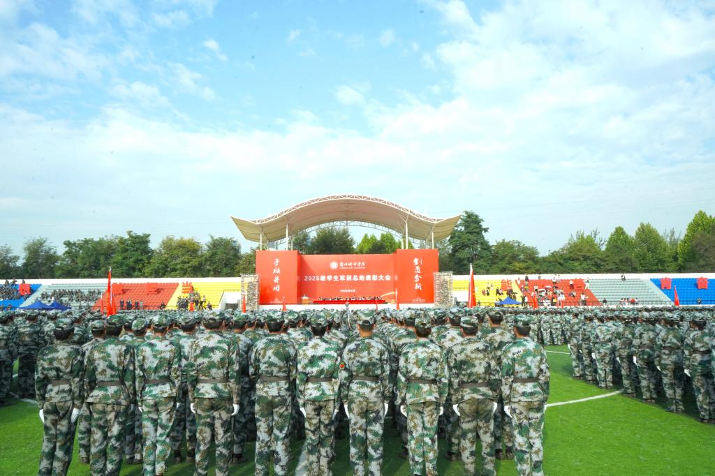 930日上午,学校在校本部田径场成功举行2025级学生军训总结表彰大会。校领导曹洁、韩高年、李慕堂、牟录贵、何玉红,承训部队首长出席大会。学校军训工作领导小组成员、各二级学院党委负责人、全体军训教官、带队教师及2025级全体参训学生参加大会。