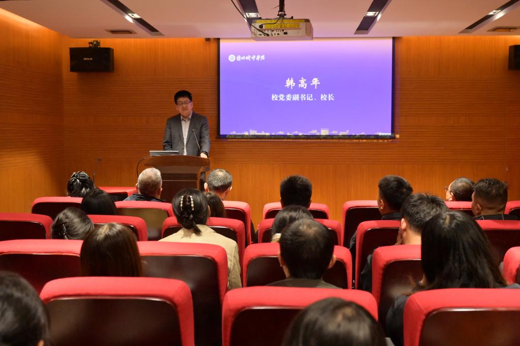 王素云作了题为《强国担使命 匠心育英才》的主题报告,介绍学校历史、文化传承、管理体系和发展定位,全面呈现了学校的工作成效、特色亮点和发展愿景,展示了学校高质量发展目标、工作举措和“九大工程”的实施情况,希望新入职教师及时转变角色,熟悉环境,融入学校;做好职业规划,站稳站好讲台,平衡教学科研关系;融入学校发展,奋发有为担当,共创美好未来。