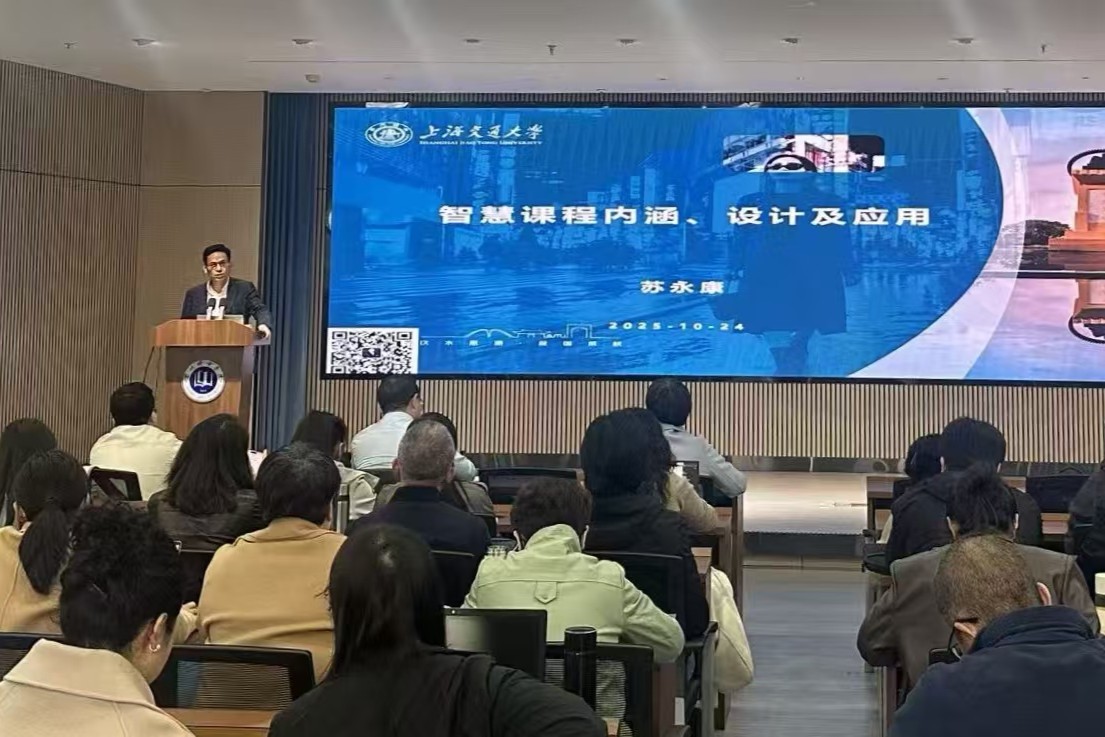 为深入贯彻落实智慧课程建设要求,提升教师信息化教学能力,10月24日下午,上海交通大学教育技术中心课程平台与数据室副主任苏永康应邀来校开展“智慧课程内涵建设及设计”专题培训。校党委常委、副校长王素云主持培训,各学院教学副院长专业负责人、骨干教师代表校级智慧课程负责人及教务处全体人员余人参会。