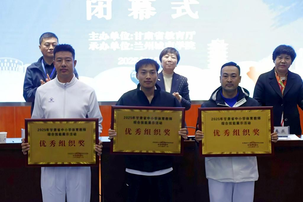 闭幕式上,参赛教师代表发言。体育学院负责人宣读团体奖、进步奖及优秀组织奖获奖名单。大赛组委会成员为获奖集体颁奖。