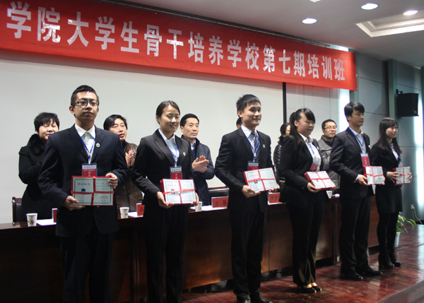 结业仪式上,党委组织部负责人宣读了《关于批准张勇兵等87名学员结业以及授予郭天柱等10名学员优秀学员荣誉称号的决定》,校团委负责人对本次培训班的情况进行了总结,社会管理学院学生马宏涛代表全体学员发言。