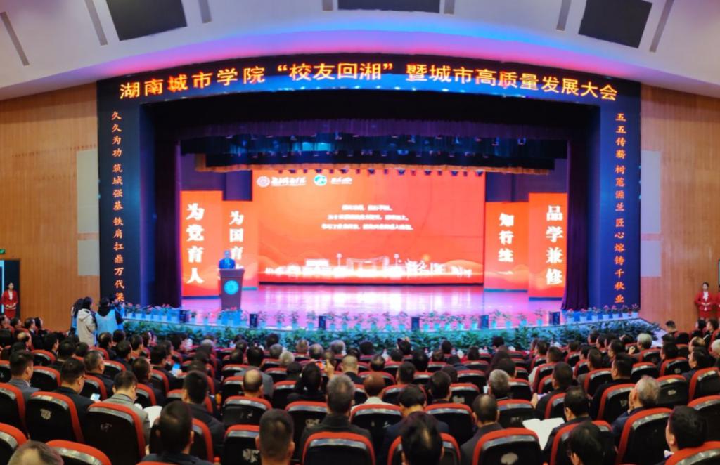 11月8日,湖南城市学院“校友回湘”系列活动暨城市高质量发展论坛在湖南益阳举行。校党委副书记、校长韩高年受邀参会并致辞,学校办公室、环境与城市建设学院相关人员随行参会。