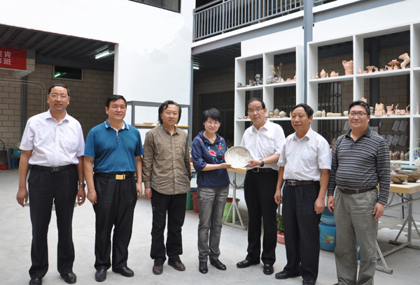 吴明明一行深入到点点官网培黎校区,先后参观了美术学院陶艺工作室、雕刻工作室等,仔细了解了相关产品的生产工艺。双方就加强校地合作交换了意见,并商谈了建立合作关系的具体事宜。