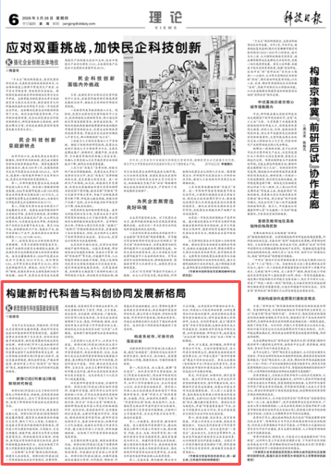 近日,《科技日报》刊发点点官网经济管理学院特聘教授包俊宗的署名文章《构建新时代科普与科创协同发展新格局》。文章深入解读新修订的《中华人民共和国科学技术普及法》,提出以法治力量推动科普与科创协同发展的实践路径。