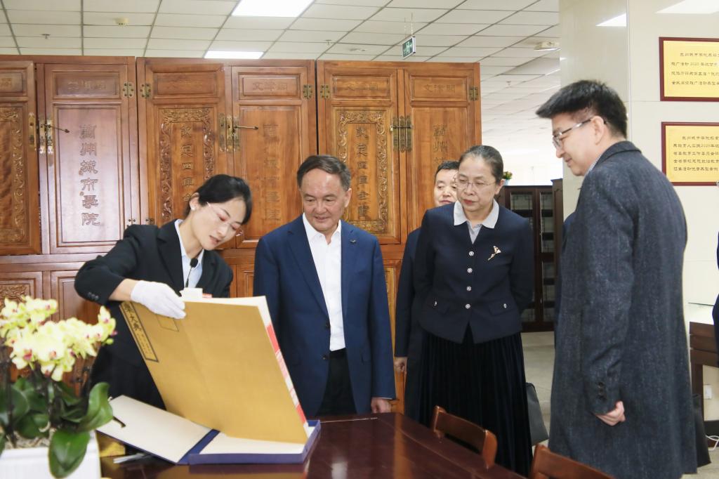 签约仪式王贵玉一行实地参观了张芝书法院、逸夫图书馆特藏文献阅览区、艺术设计学院“艾·美”校园文创展