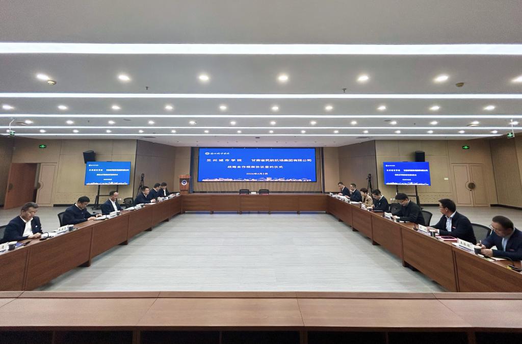 42午,学校与甘肃省民航机场集团战略合作框架协议签约仪式在逸夫图书馆博雅讲堂举行。甘肃省民航机场集团党委书记、董事长王贵玉,党委副书记、工会主席刘光喜,党委委员、党委组织部(人力资源部)部长杨清俊;学校党委书记曹洁,党委副书记、校长韩高年,校党委常委、副校长王素云,校党委常委、党委组织部部长翟云出席活动签约仪式由韩高年主持双方相关职能部门负责人参加活动。