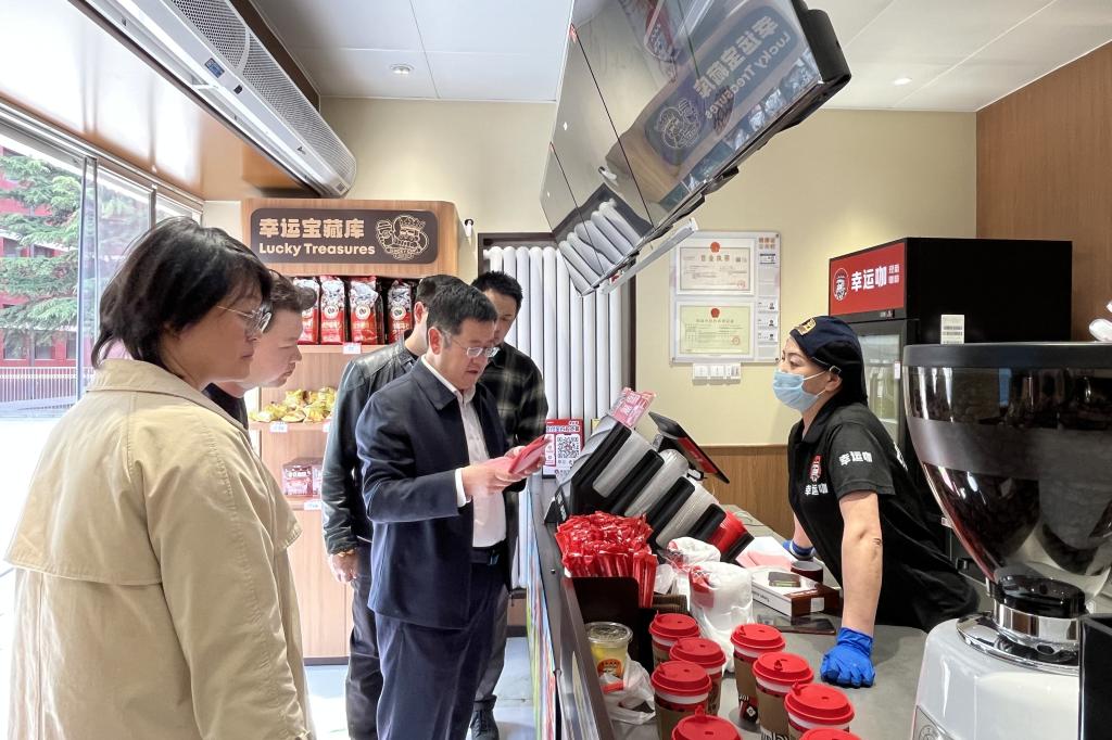 414日下午,校党委常委、副校长魏晋华带领国有资产管理处、党委保卫工作部、基建与后勤保障处、资产经营有限公司等相关部门负责人,组成专项检查组,深入校内塔斯汀、幸运咖、爱礼、生鲜水果店等食品经营商铺及菜鸟驿站等重点服务场所,开展校园商铺安全经营专项检查,全面排查安全隐患,压实安全责任。