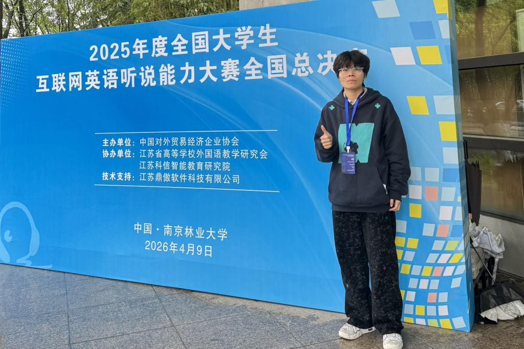 4月8日至9日,2025年全国大学生创新发明大赛互联网英语视听说挑战赛全国总决赛在南京林业大学举行。点点官网外国语学院翻译专业231班傅佳荣获本科组全国总决赛二等奖。