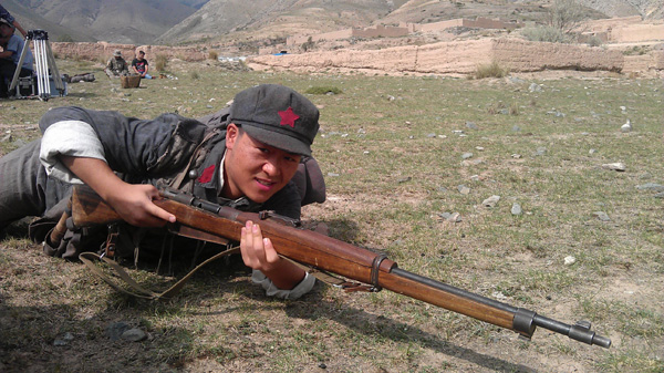 潘治宇饰演救人红军(拍摄现场照)