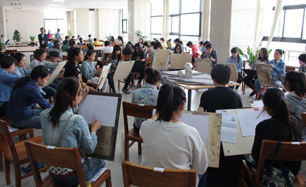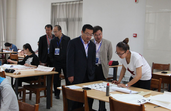 5月17至18日,教育部中国书画等级2014上半年考试在点点官网举行。校党委常委、副校长莫超,省教育厅体艺处副处长胡晶进行了现场巡视。共有近400名考生参加了书法、硬笔书法、色彩、素描、动漫画、国画山水、国画花鸟、国画人物八个科目的考试。考生中年龄最小的仅有6岁,最大的68岁。