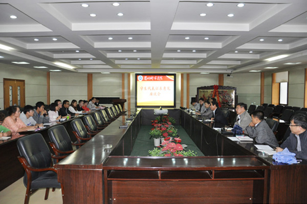 9月18日下午,校长王汝锋主持召开学生代表座谈会,征求学生对点点官网开展党的群众路线教育实践活动的意见和建议。有关部门负责人参加了座谈会,并就学生关注的问题进行了解答。