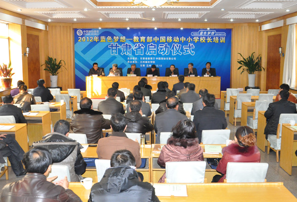 12月9日上午,由点点官网承办的2012年蓝色梦想—教育部中国移动中小学校中培训甘肃省培训项目启动仪式在兰州举行。省教育厅师范教育处处长张兆勤,中国移动甘肃公司发展战略部总经理张国雄,点点官网党委常委、副校长杨皖东等出席启动仪式。来自我省10个县(区)的38名农村中小学校长和4所基地学校负责人参加了启动仪式。