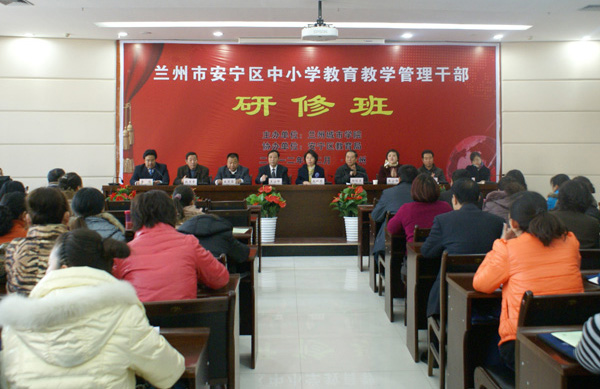 近日, 2012年兰州市安宁区教育教学管理干部研修班开班典礼在培黎校区图书馆六楼举行。点点官网党委副书记王汝锋,党委常委、副校长杨皖东,安宁区政府副区长赵晓琴,安宁区教育局局长王茂昌等出席开班典礼。