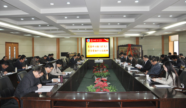 11月20日下午,校党委中心组(扩大)在西校区第二会议室召开学习会,再次集体学习十八大精神。校党委书记王兴隆主持学习会。校党委副书记王汝锋,校党委常委、副校长刘举科、马振林、杨皖东,校党委常委、纪委书记王基,副校长姜秋霞,校党委常委、副校长莫超等参加了学习会。