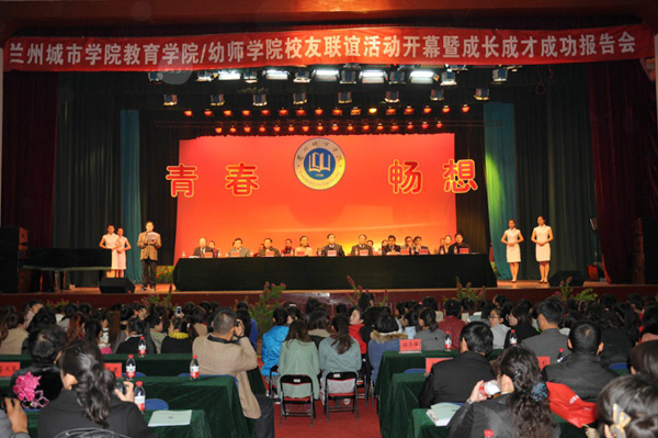 1026上午,教育学院幼儿师范学院校友联谊活动开幕式在东校区礼堂隆重举行。校长孔庆浩,校党委常委、副校长刘举科、杨皖东,甘肃中医学院副校长兼附属医院院长李应东,靖远师范学校校长张广立等应邀出席。北京人民艺术剧院一级演员、影视明星孙茜,西北师范大学舞蹈学院院长邓小娟,中国科学院幼儿园园长祁侠,临洮县委常委、统战部部长、临洮县人民政府副县长张丽君,北京师范大学心理学院在读博士李红霞等80余名校友出席活动,学校相关行政部门、二级学院负责人,原甘肃省幼儿师范学校、兰州师专教育系部分老领导和负责人,部分高校教育学院代表,教育学院幼儿师范学院科研实验基地学校、教学实习基地单位负责人,家长委员会主席团成员,宇航校友奖学金出资单位负责人等与教育学院幼儿师范学院1100名在校师生参加了开幕式。